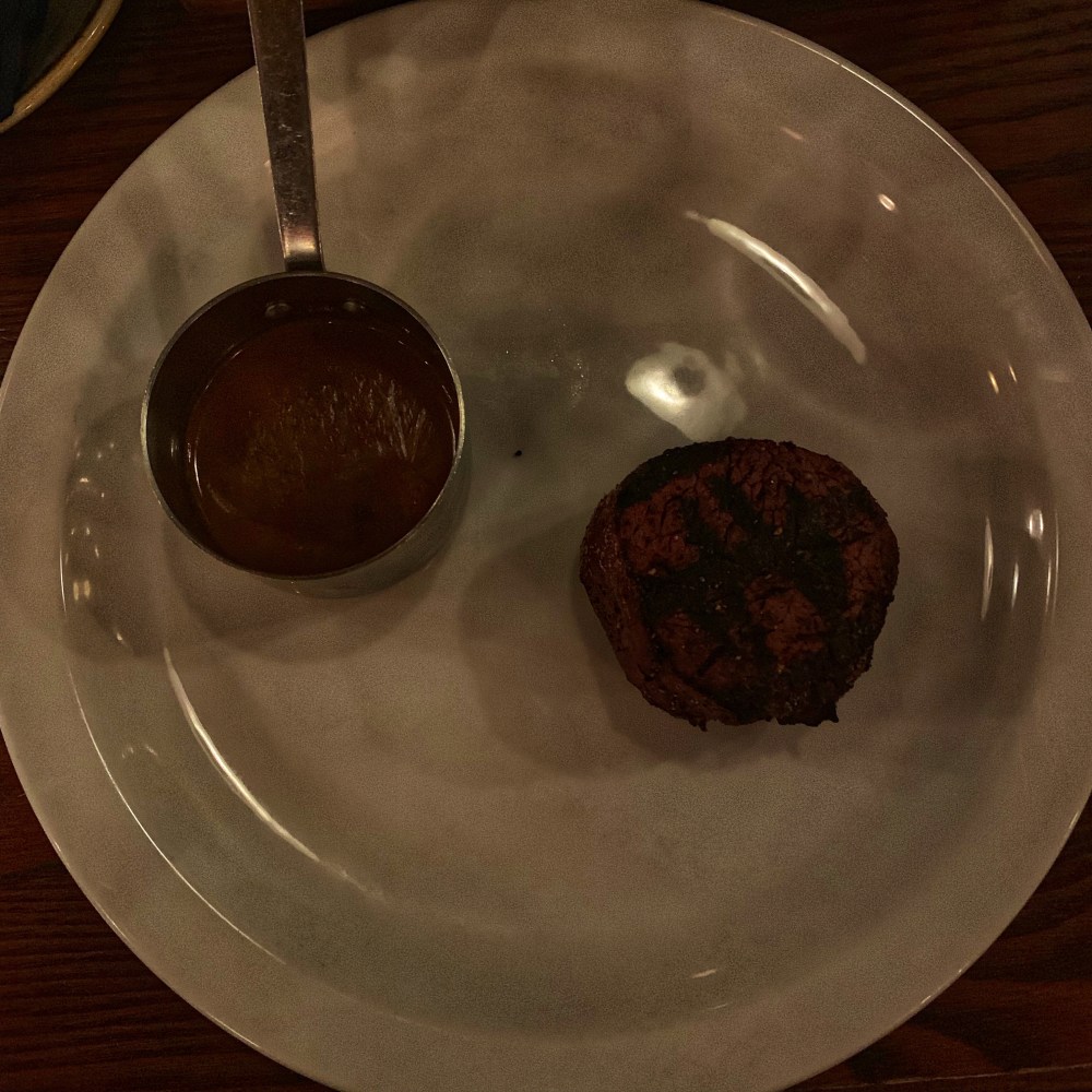Our main.. Well it just had to be fillet, didn’t it? Or not – some I know don’t rate the cut, but since Jen first convinced me to give it a go in Amsterdam on NYE 2012, I’ve never looked back. A worry when ordering steak can be it won’t be cooked to your liking, but as one would expect in a steak restaurant, this was not an issue here. I asked for medium-well and that is exactly what I got, it was perfectly done and the meat was incredible. Delicious on it’s own (sometimes you just have to appreciate the meat) and with the sauce/sides. It had been about three months since I’d last had a fillet, and this was 100% worth the wait… Although now I’m desperate to go back!!