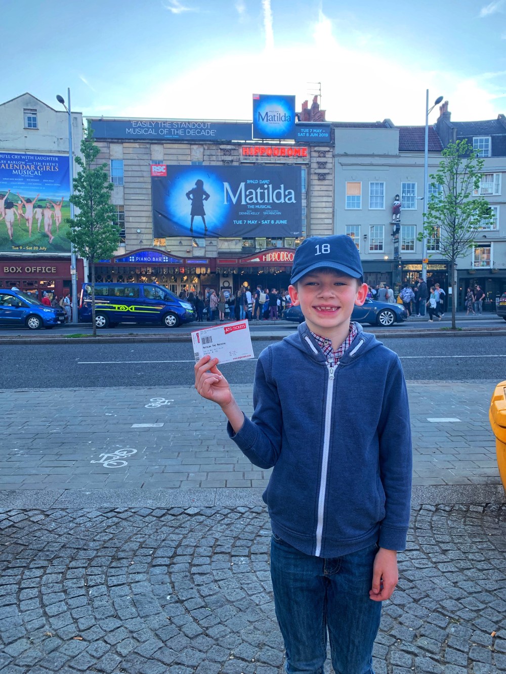 For Theo this was his first real foray into musical theatre, so for me it was great to see it through his eyes too! At eight years old I had wondered would the show be too long to keep his attention, would it be on too late (the evening showing starts at seven thirty and finishes not long after ten pm) and would he even stay awake? But I needn’t have worried – the show had plenty to keep all ages entertained and he didn’t fidget for a moment, staring enraptured at the stage. It was particularly lovely the next day to hear him telling his brother and dad about his favourite bits, which include a really well executed scene involving Miss Trunchbull and some pigtails… (Book/movie fans may be able to guess what I mean….)