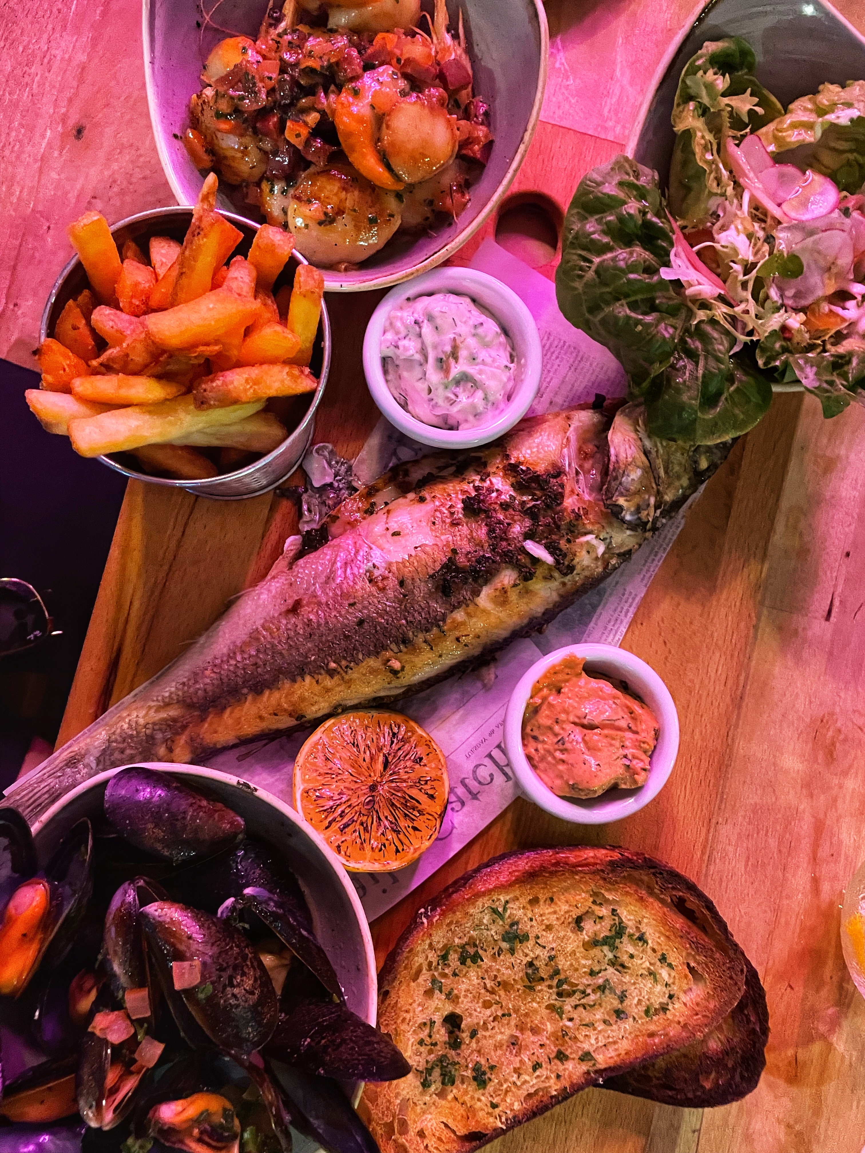 How incredible does that look? It had whole grilled fish of the day, mussels & wild garlic prawns, cuttlefish croquettes, fries, salad and wild garlic bread. Should you not be feeling so adventurous on the fish front though they also had my absolute favourite and go to when by the seaside – scampi! There’s also a kids menu. Definitely worth a visit.
