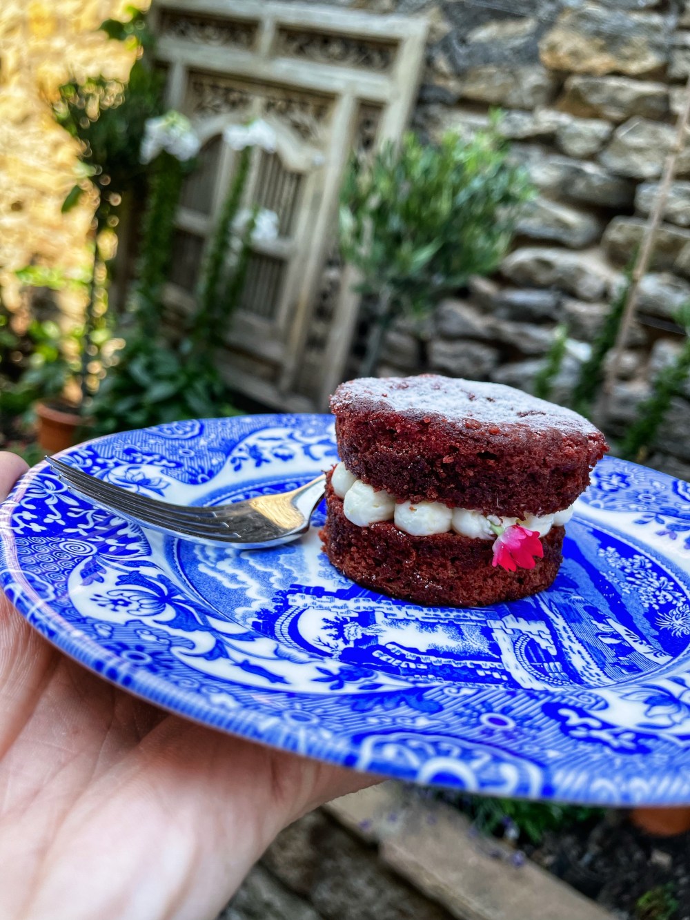 Being a water or wine kinda gal (in the summer at least) I didn’t sample the aperitif, but the rest of the group all devoured copious amounts of the rhubarb flavour and said it was delicious! Cake in the morning however I cannot resist, and the mini red velvets with a homemade lemon curd gave a delightful (if unexpected, I hadn’t read the menu 😆) zing and whet my appetite for what was to come!