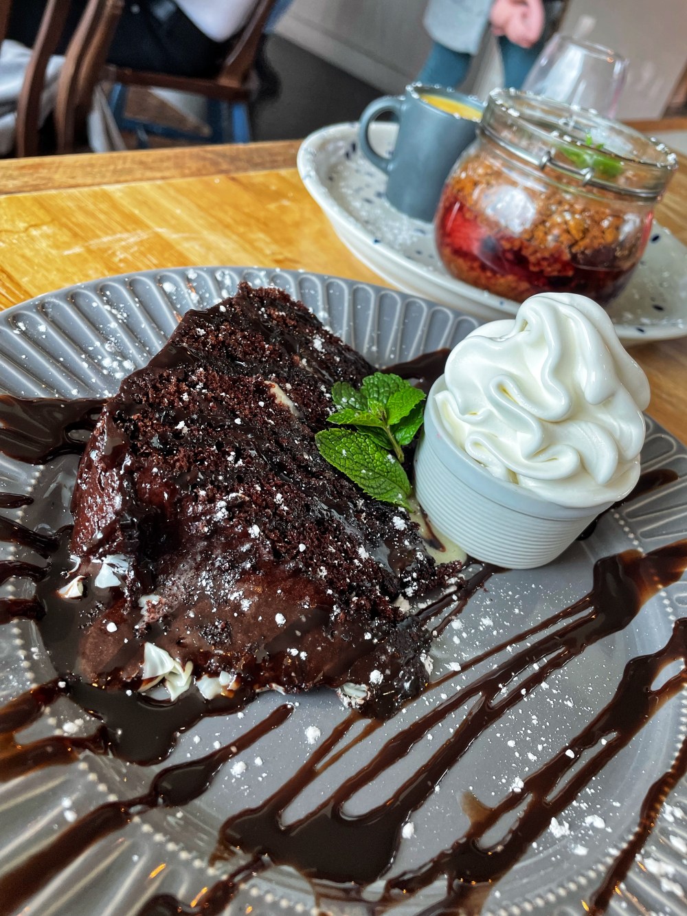 For mains (yes I had room) I went for the Cottage Pie, which was excellent comfort food as I had the beginning of an epic cold (now in its second week!) Tons of veg came with it, which I have to admit defeated me, but I wanted room for my pudding… š I chose the Chocolate Fudge Cake as I felt like it has been (unfairly!!) out of fashion for a while. When I was a teen it used to be on the menu everywhere so I needed my fix⦠I had it warmed up (ofc) with ice cream. Demolished the lot and didnāt share – delicious, 100% needs to make a come back!