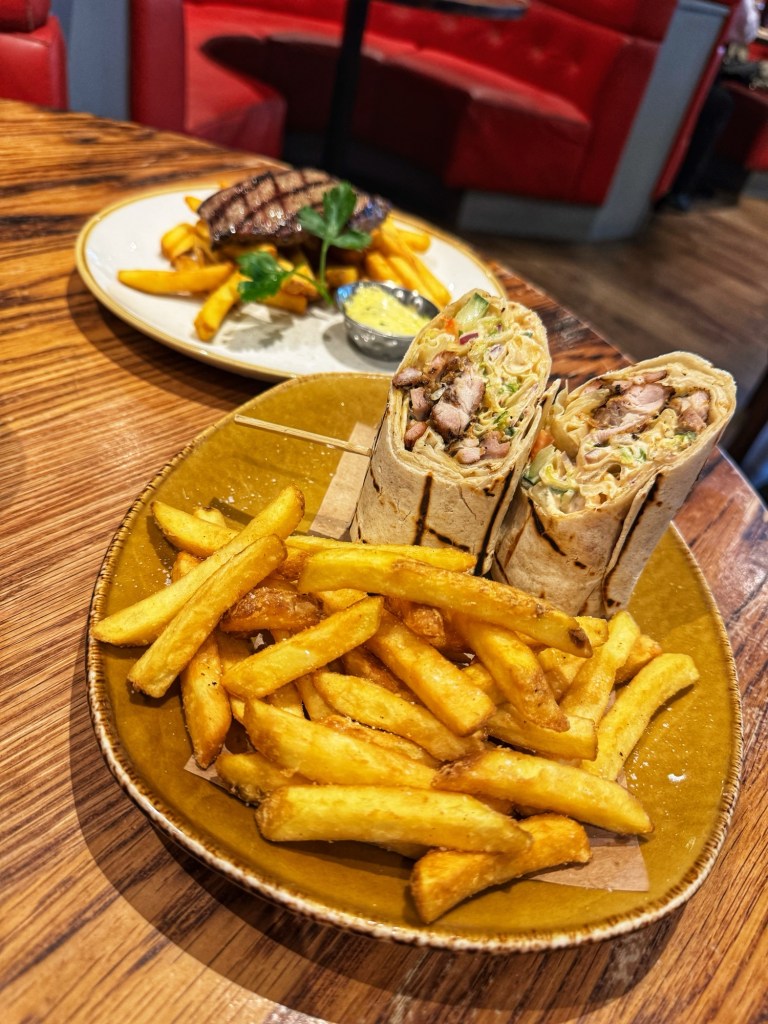 We were in sharing mode so split the steak (which is subject to a supplement, but still only then £17.95 for the 3 courses) and the chicken wrap. Of the two dishes steak was definitely my preference, it wasn’t quite pink enough for my liking but it was still delicious and the garlic butter was spot on.