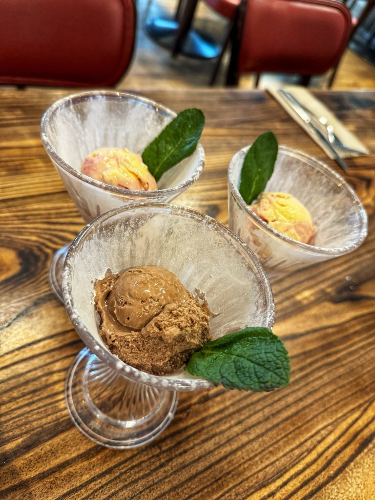 💜 a scoop of Callestick Farm ice cream for each of us – two clotted cream & strawberry, one chocolate