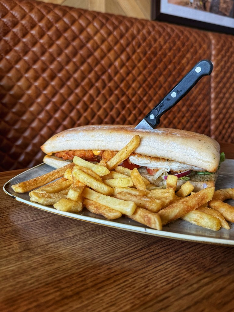 🐓 Crispy Chicken Sandwich (garlic ciabatta filled with crispy chicken)